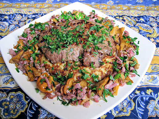 Le rissoler dans les sucs des girolles dans un filet d'huile d'olive environ 2 mn de chaque côté ; il ne doit pas trop cuire et rester légèrement rosé et moelleux sinon c'est infâme.